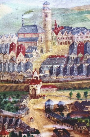 Vyobrazení Domažlic s opevněním a Týnskou branou - kol. r. 1790