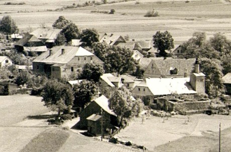 V popředí čp. 28, vlevo zámek, vpravo pivovar